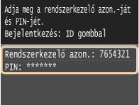 Beállítások konfigurálása a Távoli felhasználói felületenAdja meg a Távoli felhasználói felület [Rendszerkezelő mód] területén a rendszerkezelő azonosítóját és PIN-kódját, és jelentkezzen be. Kattintson a [Beállítások/Bejegyzés]
