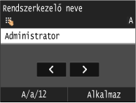 Adja meg a rendszerkezelő nevét legfeljebb 32 karakterrel, majd érintse meg az <Alkalmaz> gombot. Szöveg beírása
