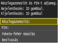 A készülék hozzáférhetősége több felhasználó vagy csoport esetén több azonosító használatával is szabályozható. Ha egy felhasználó megpróbálja működtetni a készüléket, amelyen engedélyezve van a részlegazonosító-kezelés, akkor megjelenik egy bejelentkezési képernyő, és a felhasználónak meg kell adnia saját részlegazonosítóját és PIN-kódját, hogy használni tudja a készüléket. Ha a részlegazonosító-kezelés engedélyezve van, akkor a készülék részlegazonosítónként nyilvántartja a különböző funkciók, például a színes másolás vagy fekete-fehér beolvasás használatát. Az egyes részlegazonosítókkal kinyomtatható oldalak összesített számának felső határát is beállíthatja.