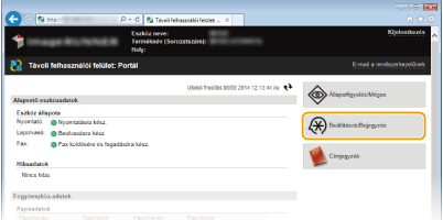 Kattintson a [Beállítások/Bejegyzés] gombra.