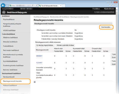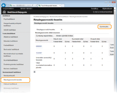 Kattintson a [Részlegazonosító-kezelés] lehetőségre, és jegyezze be vagy szerkessze a részlegazonosítókat.