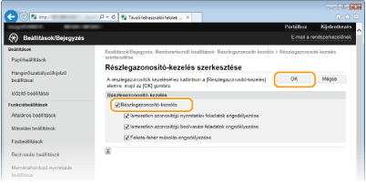 A részlegazonosító-kezelés engedélyezéséhez jelölje be a jelölőnégyzetet. Ha nem szeretné használni a részlegazonosító-kezelést, akkor törölje a jelet a jelölőnégyzetből.