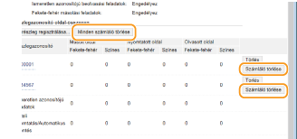 Ha szeretné nullázni egy azonosító nyilvántartását, akkor a [Részlegazonosító] részben kattintson a megfelelő szöveges hivatkozásra, majd kattintson a [Számláló törlése]  [OK] lehetőségre. Ha minden részlegazonosító nyilvántartását nullázni szeretné, akkor a [Minden számláló törlése]  [OK] lehetőségre kattintson.