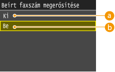 Megjeleníti a faxszám megerősítésére szolgáló képernyőt.