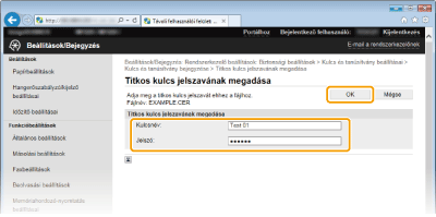 [Jelszó] Adjon egy legfeljebb 24 alfanumerikus karakterből álló jelszót a bejegyzendő fájlhoz tartozó magán kulcskészlet számára.