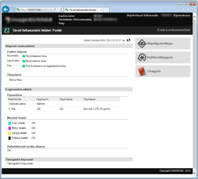A Távoli felhasználói felületen minden műveletet és beállítást alkalmazhat. Adja meg a megfelelő azonosítót a [Rendszerkezelő azonosítója], és a PIN-kódot a [Rendszerkezelő PIN] (