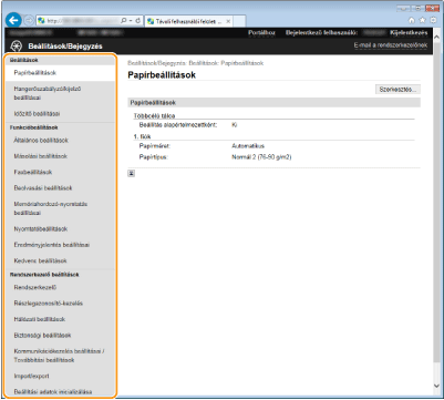 A [Rendszerkezelő beállítások] rész beállításait csak rendszerkezelői módba bejelentkezve módosíthatja.