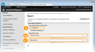 Az exportálás folyamata közben a képernyő nem változik. Ne működtesse a Távoli felhasználói felületet, amíg a [The (file name) download has completed.] (A (fájlnév) letöltése befejeződött.) üzenet meg nem jelenik a képernyő alján.