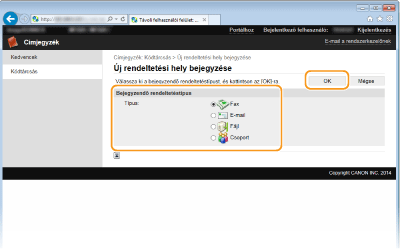 ![]() [Név]Adja meg a rendeltetési hely nevét.