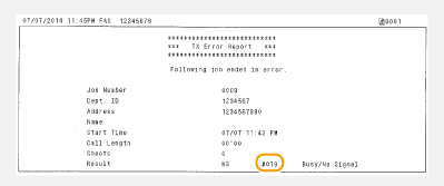 Ha a címzett készüléke ki van kapcsolva vagy foglalt a vonala, akkor előfordulhat, hogy a faxot nem sikerül elküldeni. Kérje meg a címzettet, hogy ellenőrizze a készülék állapotát. Ha ez a kód jelenik meg egy fax tengerentúlra történő küldésekor, szúrjon be szüneteket a faxszámba.