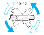 Tartsa két kézzel vízszintesen a dobegységet az ábra szerint, majd döntse meg körülbelül 12-szer balra és jobbra.