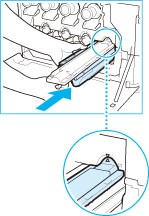 Fogja meg a dobegység fogantyúját és a beugró részét, és a dobegységen és a fő egység nyílásánál látható jelet egymáshoz illesztve helyezze be a dobegységet.