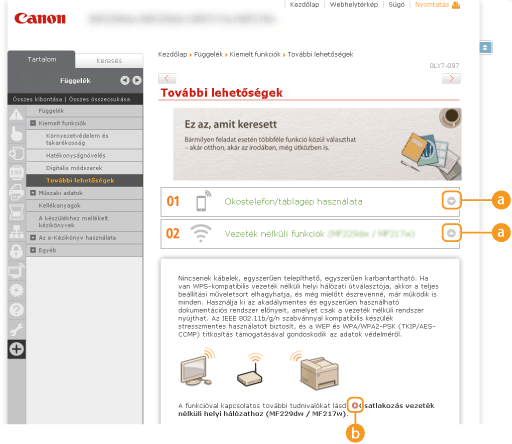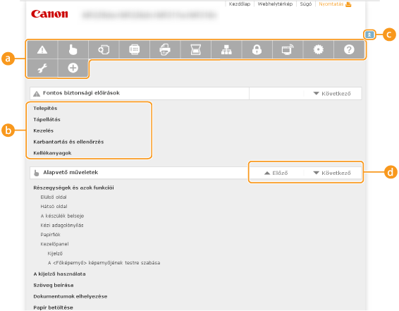 Kattintson az e-Kézikönyv megtekintésével, keresések végrehajtásával kapcsolatos és más információk megjelenítéséhez.