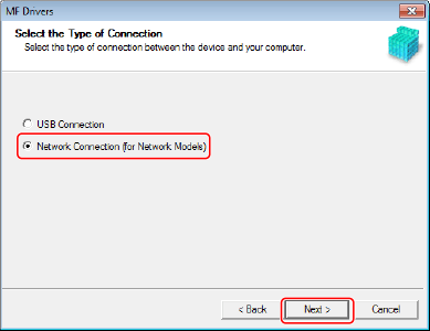 If the following screen is displayed, select [Network Connection (for Network Models)] → click [Next].