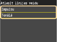 Lai iestatītu tālruņa līnijas veidu, izpildiet zemāk aprakstīto procedūru. Ja neesat pārliecināts par izmantotās līnijas veidu, sazinieties ar vietējo telekomunikāciju uzņēmumu. <Atlasīt līnijas veidu> atkarībā no valsts, kurā lietojat iekārtu, šis iestatījums var nebūt pieejams.
