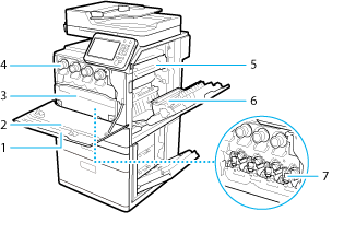 Vienības, kas toneri uzklāj uz papīra. Norādījumus par veltņu nomaiņu skatiet sadaļā