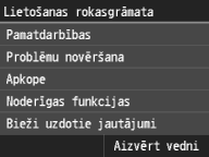 Nospiediet, lai atgrieztos iepriekšējā ekrānā. Ja, norādot iestatījumus, nospiežat šo taustiņu, iestatījumi netiek lietoti un displejā tiek parādīts iepriekšējais ekrāns.