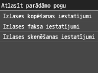 Ja izdzēšat pašu bieži izmantoto iestatījumu, kas opcijā <Kopēšana>, <Fakss> vai <Skenēšana> ir reģistrēts rādīšanai sākuma ekrānā, tiek izdzēsta arī sākuma ekrānā reģistrētā poga.