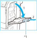 Ja ievietojat liela formāta papīru, izvelciet teknes pagarinājumu.