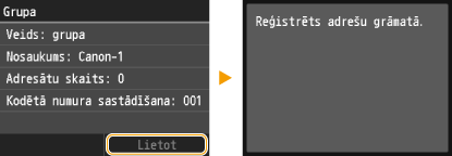 Pēc adresātu reģistrēšanas varat mainīt grupu saturu, piemēram, nosaukumus, adresātus un kodētās numuru sastādīšanas numurus.