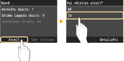 , ekrānā pieskarieties pie <Cancel> vai nospiediet