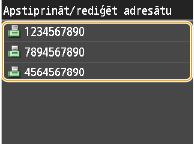 <Norādīt ar cipartaustiņiem>. Var norādīt līdz 10 adresātiem.