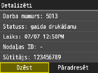 Varat drukāt saņemšanas rezultātu pārskatus ikreiz, kad dokumenti tiek saglabāti atmiņā. Lai drukātu pārskatus, pieskarieties <Iesl.>. Jānorāda arī iestatījuma <Saņemšanas rezultātu atskaite> vērtība <Iesl.>.