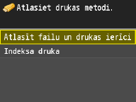 Varat drukāt USB atmiņas ierīcē saglabāto attēla failu sīktēlus (tikai JPEG). Lai drukātu attēlu sīktēlus, ekrānā pieskarieties pie <Indeksa druka> un pārejiet pie nākamās darbības.