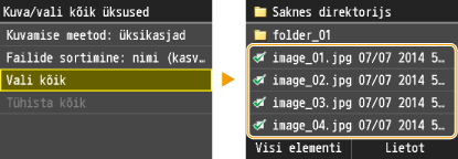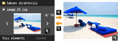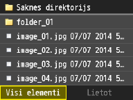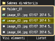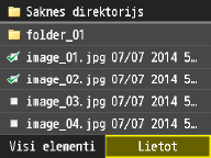 Varat mainīt rādīšanas metodi no <Detalizēti> (failu nosaukumiem un modificēšanas datumiem) uz <Attēli> (priekšskatījumiem). Priekšskatot attēlus, varat pārbaudīt faila saturu, pirms izvēlaties to drukāt.