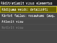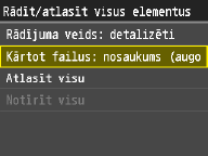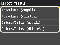 Ja pieskaraties iestatījumam <Datums/laiks (augoši)> vai <Datums/laiks (dilstoši)>, faili tiek kārtoti pēc to modificēšanas datuma un laika.