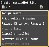 Uz vienas lapas varat drukāt no diviem līdz četriem attēliem. Pieskarieties <2 uz 1> vai <4 uz 1>.