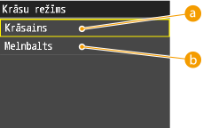 Šis iestatījums ļauj iestatīt krāsu režīmu, kuru vēlaties norādīt, drukājot.