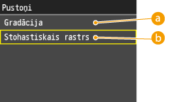 Vienmērīgi izdrukā ne tikai diagrammu malas, bet arī pustoņus diagrammās. Iestatiet <Režīms 2>, ja lielas rakstzīmes un pustoņi biezās līnijas ar tumšām krāsām netiek attēloti pareizi un drukāti vienmērīgi gadījumā, kad ir izvēlēts iestatījums <Režīms 1>.