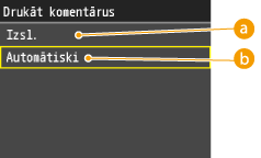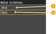 Ja pārklājas dažādu krāsu dati, iekārta var neatšķirt krāsu dokumentus no vienkrāsainiem pat tad, ja izvēlēta opcija <Krās.>. Piemēram, lai gan izdruka izskatās vienkrāsaina, bet tajā pārklājās dažādu krāsu dati, tā tiek drukāta krāsu režīmā, drukāšanai izmantojot krāsu tonera kasetnes, nevis melnā tonera kasetni. Turklāt, ja dati lietojumprogrammā, kuru lietojat, tiek izveidoti kā krāsu dati, tie tiek drukāti krāsu režīmā, lai arī tie izskatās vienkrāsaini.