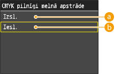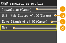 Ja kā <CMYK simulācijas profils> vērtība ir izvēlēts cits iestatījums, nevis <Nav>, uzdrukāšana netiek lietota.