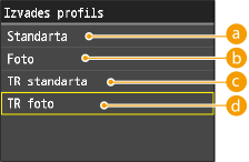 Ja sadaļā <Izvades profils> ir izvēlēts iestatījums <TR standarta> vai <TR foto>