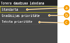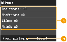 Precīzi pielāgo katra iestatījuma <Dzeltenais>, <Madžentas>, <Ciāna> un <Melnā> drukas blīvumu.