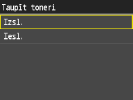 Šis iestatījums ļauj iestatīt tonera taupīšanas režīmu. Tonera taupīšana dokumentu drukāšanai izmanto mazāk tonera un var paildzināt tonera izmantošanas laiku.