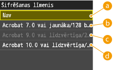 Lai izmantotu šo funkciju, ir nepieciešama papildu Send PDF Security Feature Set (Universālais sūtīšanas PDF drošības funkcijas komplekts).