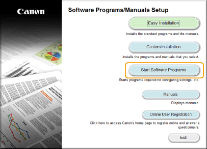 Noklikšķiniet uz [Start Software Programs] (Sākt programmatūras programmas).