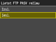 PASV režīma izmantojums FTP ir atkarīgs vai nu no izmantojamās tīkla vides, vai tā datņu servera iestatījumiem, uz kuru sūtāt informāciju. Pirms norādāt FTP PASV režīmu, konsultējieties ar jūsu izmantotā tīkla administratoru.