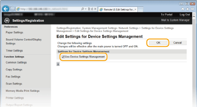 [Settings for Device Settings Management].