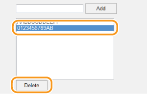 Izvēlieties MAC adresi un noklikšķiniet uz [Delete].