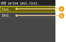 Deaktivizē USB atmiņas ierīcē saglabāto datu nolasīšanas funkciju. USB atmiņas ierīcē esošos datus nevar izdrukāt.