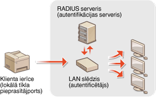 IEEE 802.1X ir standarts un mehānisms, kas paredzēts nesankcionētas piekļuves tīklam bloķēšanai, un tas kopīgi pārvalda lietotāju autentifikācijas informāciju. Ja ierīce mēģina izveidot savienojumu ar 802.1X tīklu, ierīcei jāveic lietotāja autentifikācija, lai pārliecinātos, vai savienojumu veic autorizēts lietotājs. Autentifikācijas informācija tiek nosūtīta uz RADIUS serveri, kur tā tiek pārbaudīta. Šis serveris atļauj vai aizliedz sakarus ar tīklu atkarībā no autentifikācijas rezultāta. Ja autentifikācija neizdodas, LAN slēdzis (jeb piekļuves punkts) bloķē piekļuvi no tīkla ārpuses. Iekārta var izveidot savienojumu ar 802.1X tīklu kā klienta ierīce.