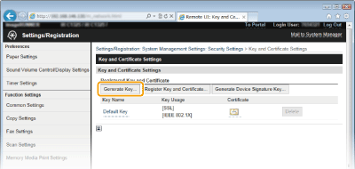 [Key and Certificate Settings].