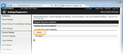 Noklikšķiniet uz [Register Key and Certificate] vai [Register CA Certificate].