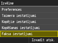 Visi faksa iestatījumi ir ar īsu aprakstu. Noklusējuma iestatījumi ir atzīmēti ar krustiņu (