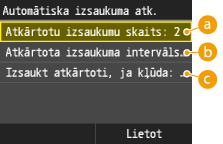 līdz 99 (min)Izsaukt atk., rodoties kļūdai