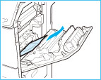 Uzmanīgi izvelciet papīru no papīra atvilktnes labās puses vāka.